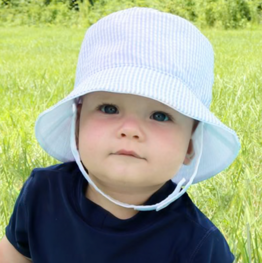 Reversible Seersucker Bucket Hat with Straps- Blue
