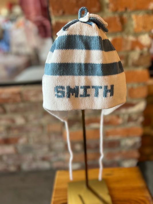 Stripe Earflap Hat- Denim/White/Navy