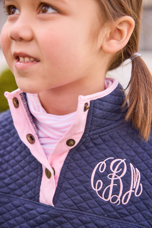 Classic Quilted Pullover - Navy/Light Pink