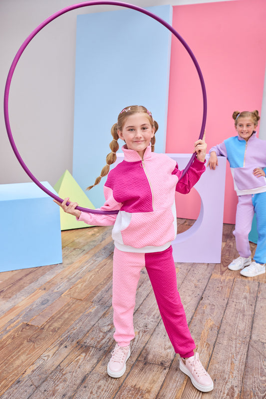 Color Block Joggers - Pink and Cranberry Quilted Trellis