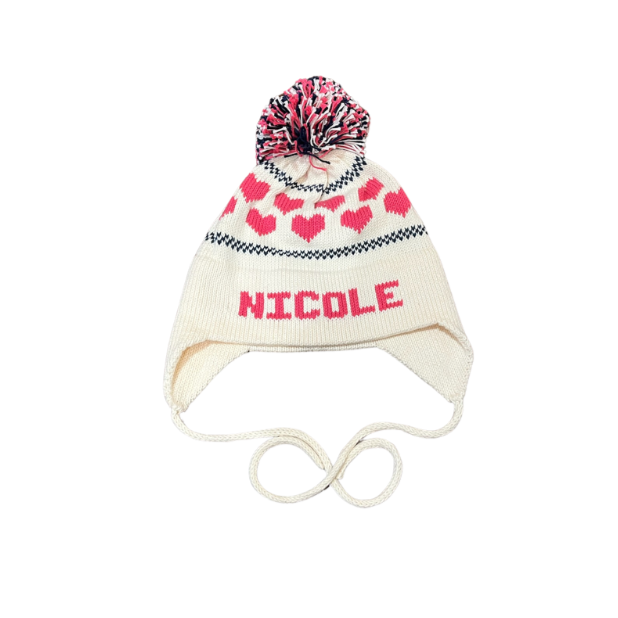 Heart Earflap Hat - Natural/Navy/Fuchsia