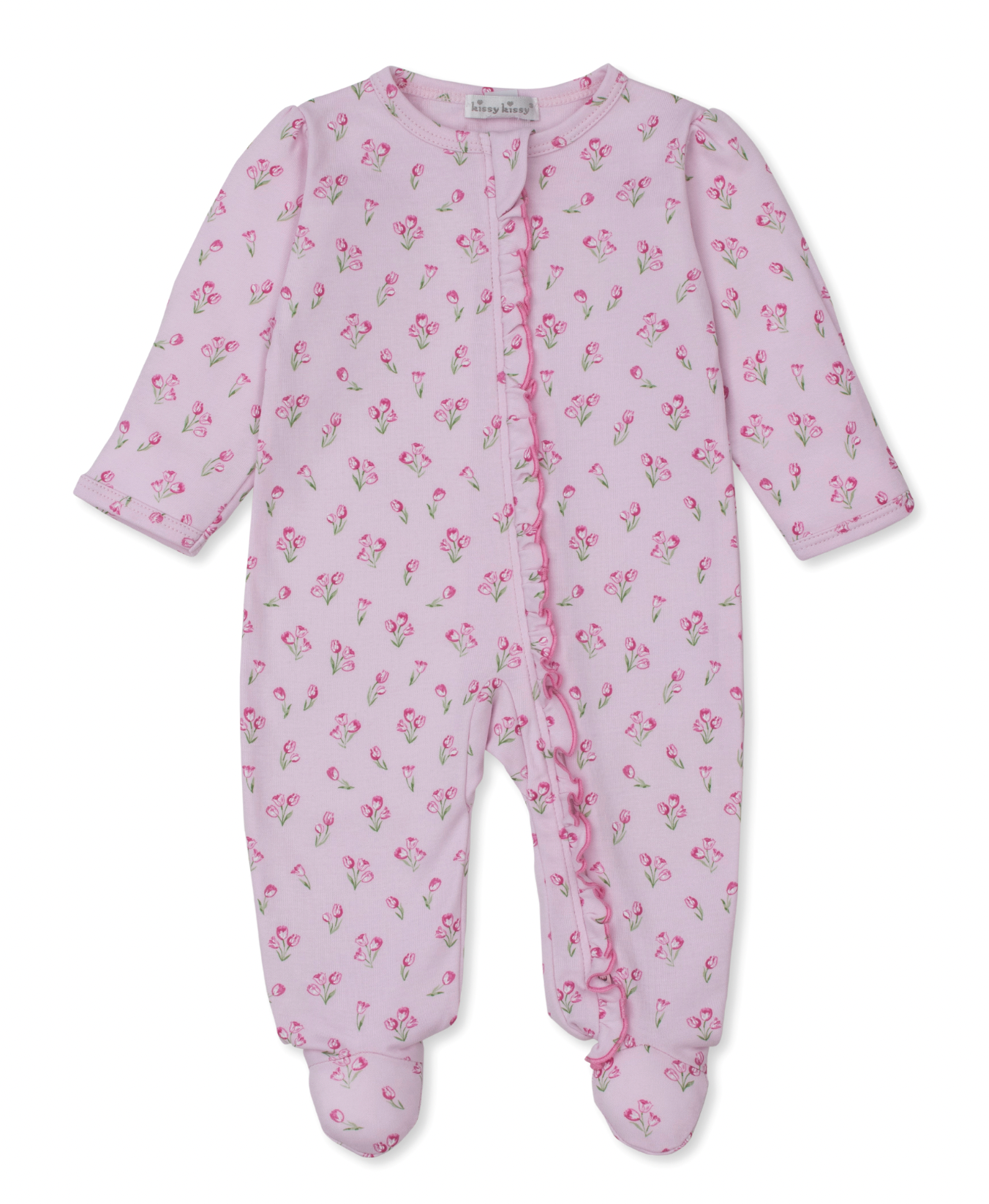Pink Footie with Zipper - Pink Floral